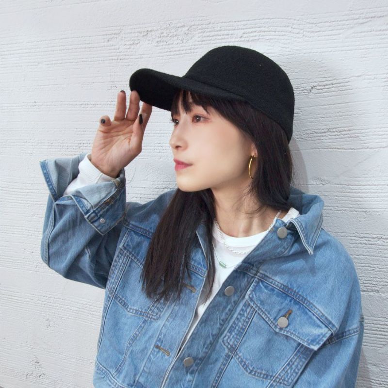シンプルなサーポキャップはトップにぽちがついてるだけで個性的なコーデにアップデートしてくれます。