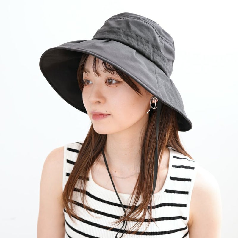 【かぶれる日傘】ギャザーハット(ストラップ付き)