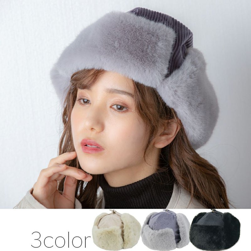 コーディロイ フェイクファー フライトキャップ