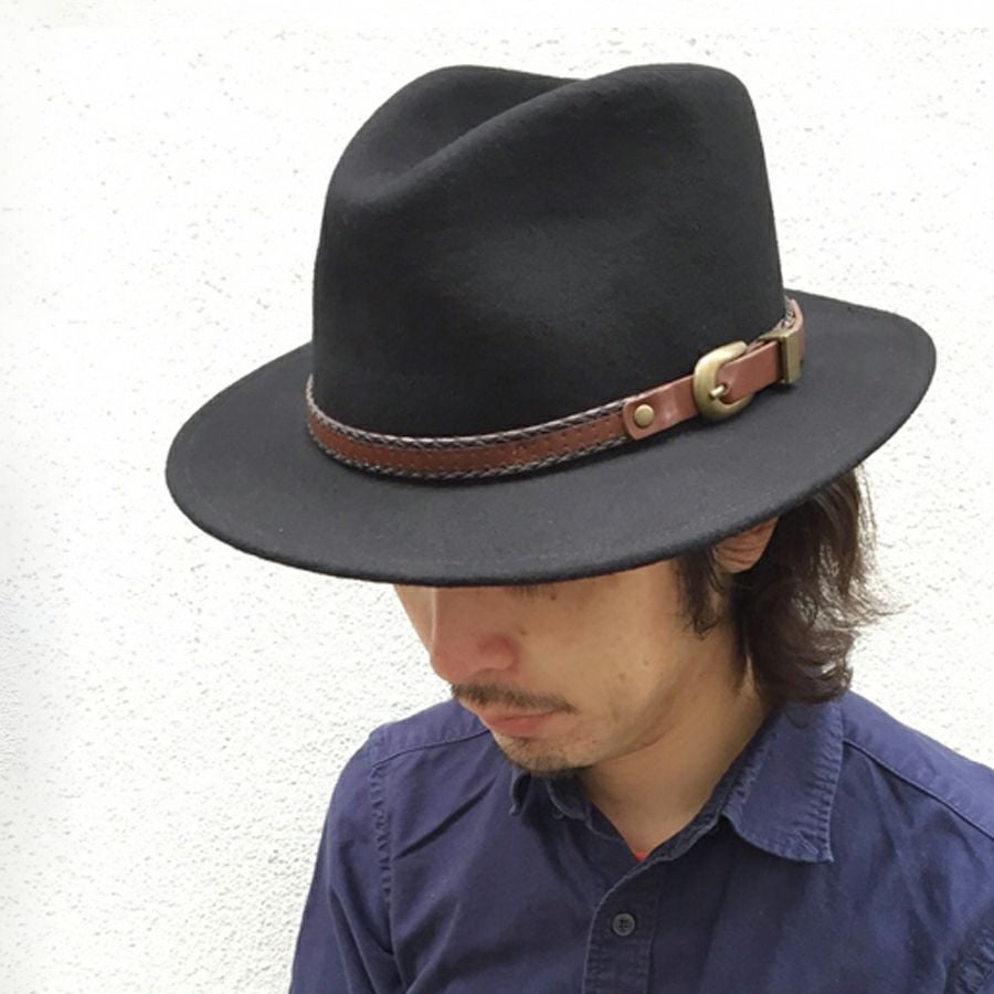 polcadot ウエスタンベルトつば広フェルト中折れ