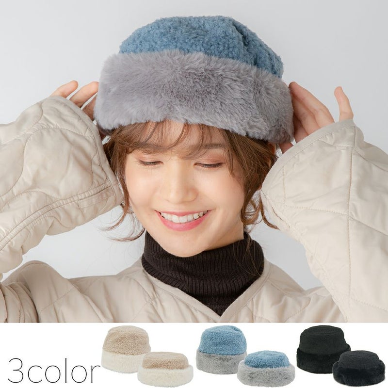 バイカラー ボア ベレー帽