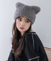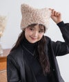 トレンド感あふれる猫耳デザインが特徴のファーニット帽。