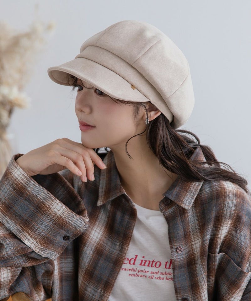 上品なスエード調素材が魅力の、大人のためのキャスケット。