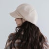 やわらかなつばがフェイスラインに自然に沿い、洗練されたシルエットを演出します。