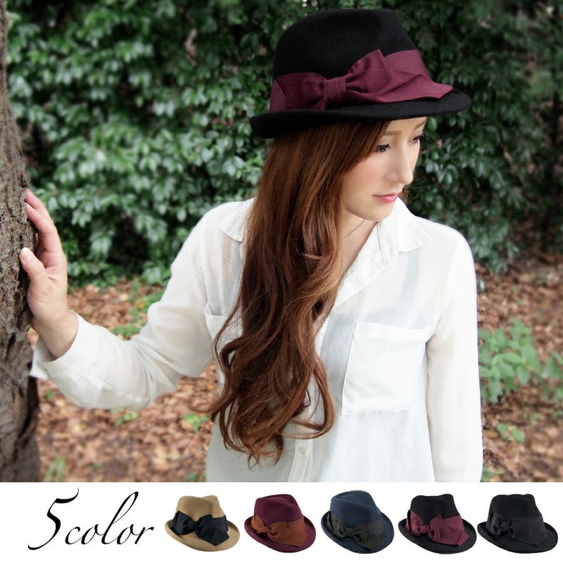 ふくれつばリボンフェルト中折れ/小さめサイズ