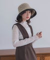 2トーンのコントラストが、顔まわりをさりげなく引き立て、コーディネートのアクセントに。